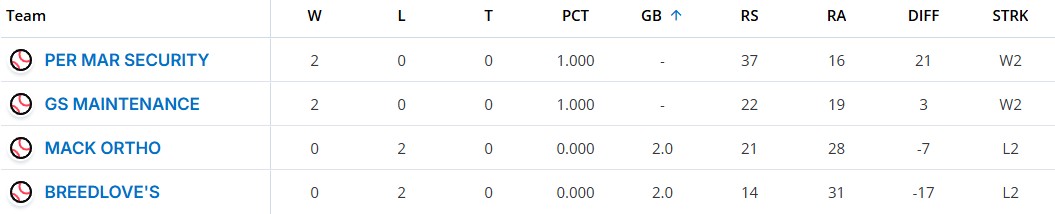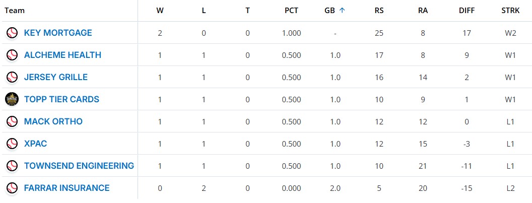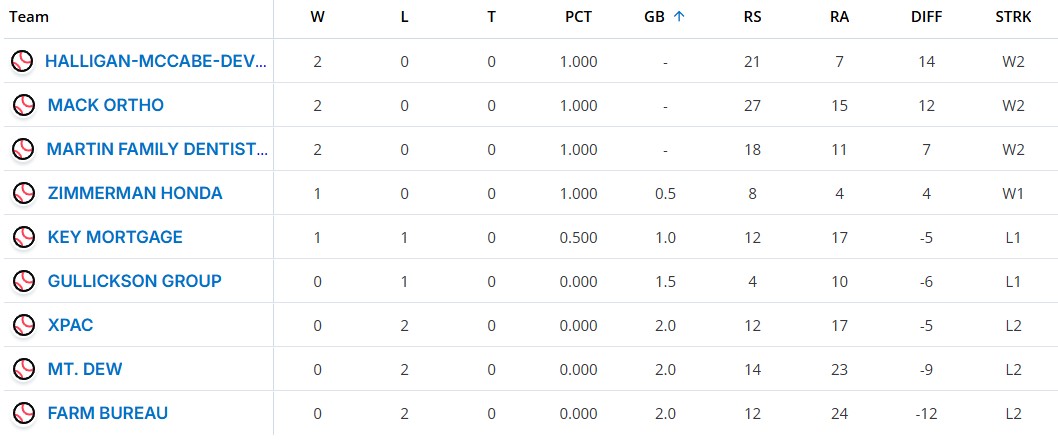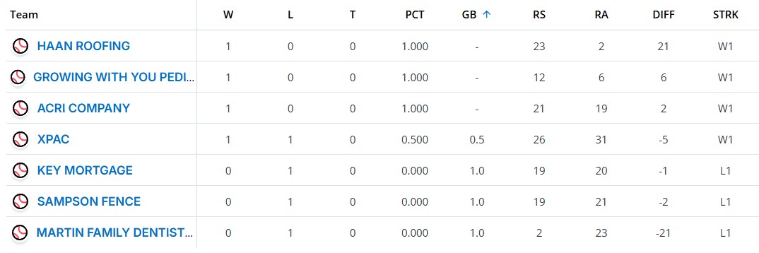 2026 Regular Season StandingsMore Up-To-Date Standings can be found in the GameChanger App